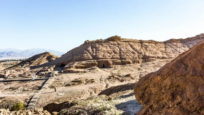 موقع أثري يضم مقابر ومنازل منحوتة بالصخر يعود تاريخها لآلاف السنين، ويُعتقد أنه موطن النبي شعيب، يتميز بجو هادئ وإرث روحي وتاريخي غني.