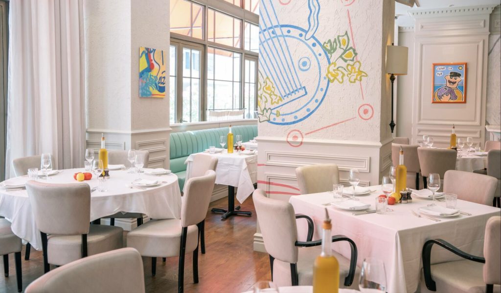 الغداء في La Petite Maison مع قائمة غداء فرنسية متوسطية.